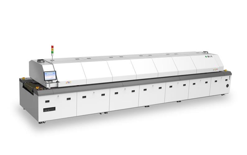 · 强制对流加热,高效的热补偿能力配以精确的温控精度,加热温区数:8 , 10 , 13,上下加热。